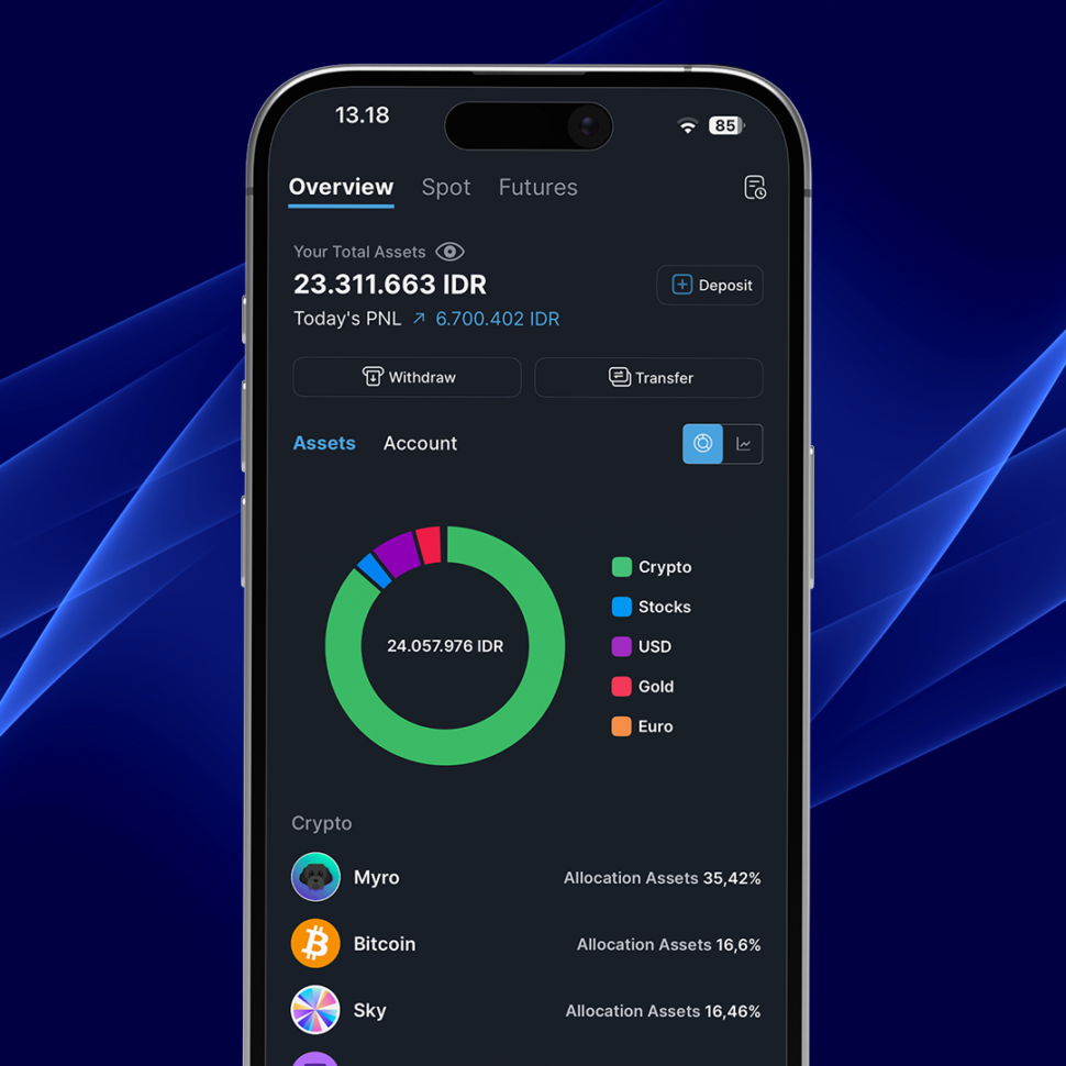 Kini, kamu bisa melihat semua aset digital, portofolio, dan riwayat transaksi langsung di satu layar utama. Tampilan dashboard baru ini dibuat lebih intuitif agar kamu bisa melacak performa investasi dengan cepat tanpa harus berpindah halaman.