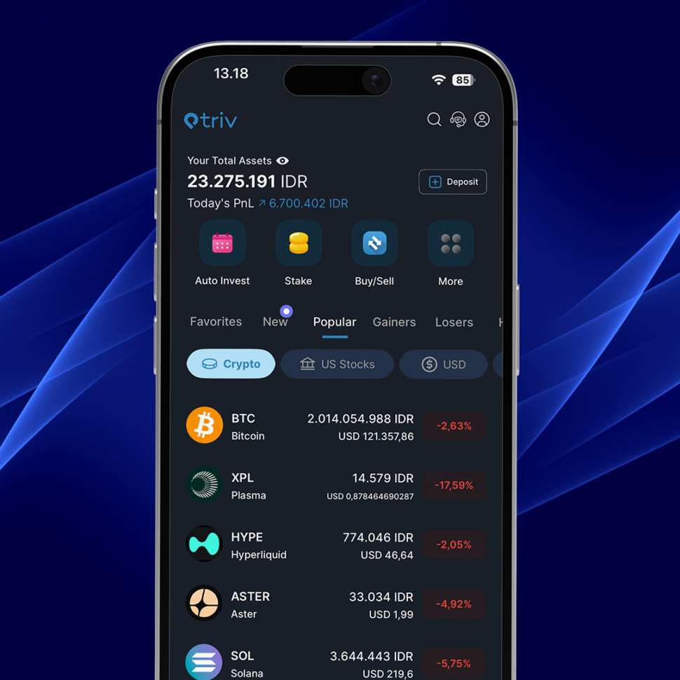 Dengan UIX Update TRIV 3.0, kami menghadirkan desain dan alur penggunaan baru yang lebih fokus pada kenyamanan kamu sebagai pengguna. Setiap detail mulai dari warna, ikon, hingga tata letak dirancang ulang agar kamu bisa memantau aset, membeli kripto, atau mengelola portofolio tanpa ribet.